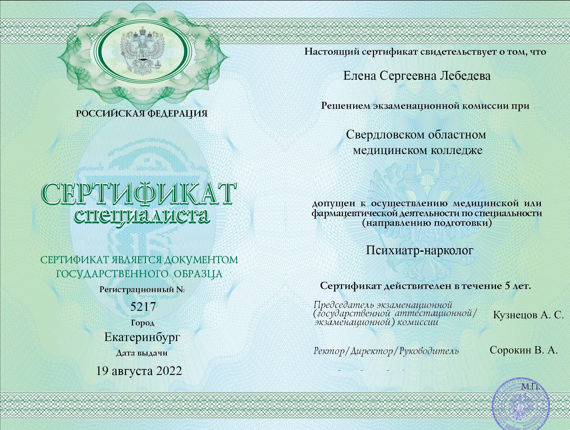 Елена Сергеевна Лебедева врач нарколог клиники доктора Стукаловой в Куровском